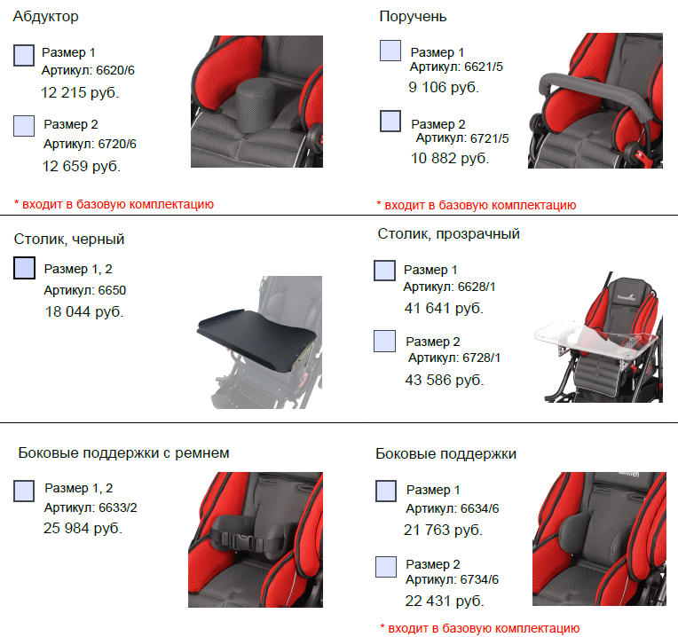 Коляска может быть оснащена дополнительными аксессуарами в соответствии с потребностями пользователя.