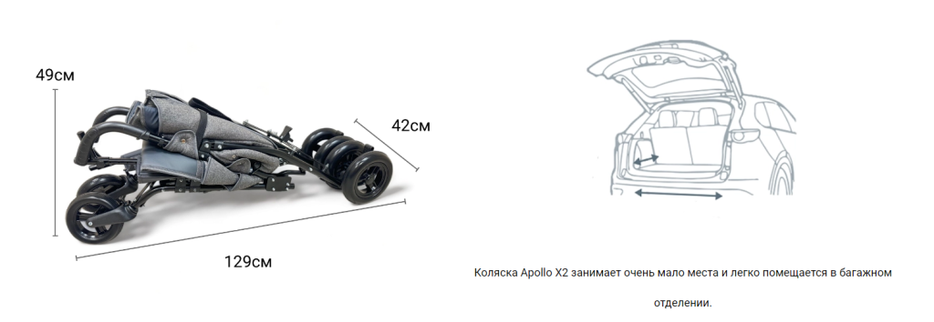 Коляска APOLLO X2 имеет широкий спектр дополнительных аксессуаров, облегчающих организацию ежедневных прогулок, в не благоприятных погодных условиях. Коляска имеет легкую и прочную конструкцию, складывается по типу трость. Под креслом установлена корзина для хозяйственных нужд. Даже по неровным участкам дорог управлять коляской легко и просто. Независимая система амортизации и поворотные передние колеса делают ее чрезвычайно маневренной.