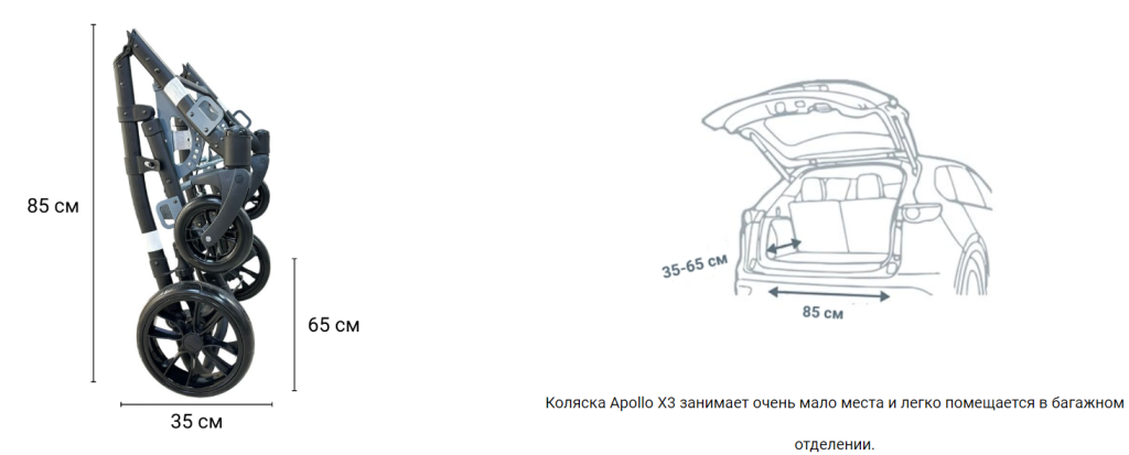 Компактные габариты и небольшой вес делает коляску удобной в быту