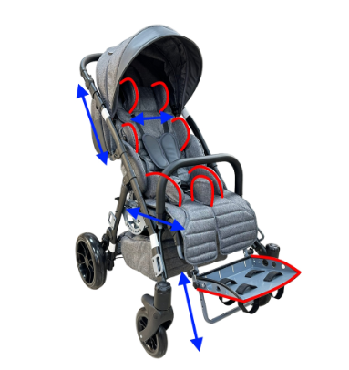 Она создана таким образом, чтобы в минимальной степени напоминала родителям, что они толкают специальную коляску, и, одновременно, включает в себя ряд удобств и можно ее настроить таким образом, чтобы наиболее соответствовала требованиям и потребностям ребенка.
