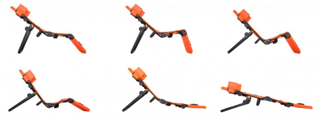 Лежанка состоит из прочной алюминиевой рамы, защищенной от воздействия воды. Трубки рамы покрыты мягкой оболочкой, чтобы не повредить ванну или бассейн. Уникальная конструкция рамы позволяет регулировать угол наклона подножки и спинки, а также высоту и угол наклона сиденья. Это позволяет оптимально приспособить лежанку для нужд пациента. Обивка изготовлена из сетчатой водостойкой ткани. В зависимости от размера лежанка имеет разные цвета обивки и рамы. Возможные цвета: красный, синий, черный.