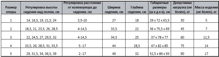 • Опора состоит из сиденья со спинкой, регулируемых по длине коленоупоров, стола-парты с регулируемым углом наклона, корсета.