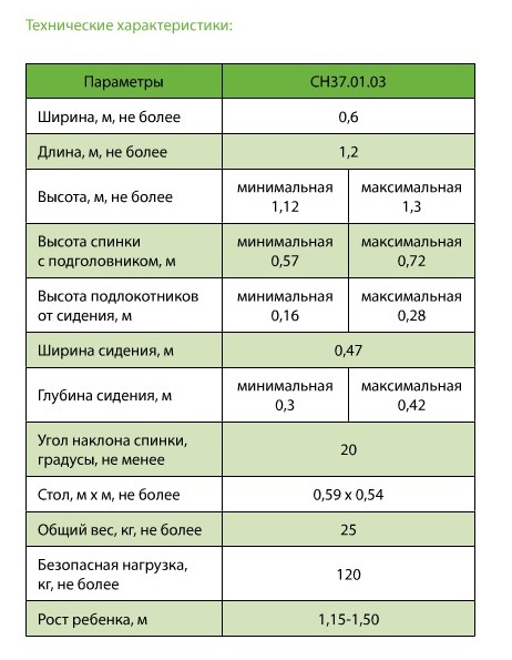 3 Размер:Стул ортопедический подростковый СН-37.01.03 (размер 3) предназначен для детей ростом от 115 см до 150 см.