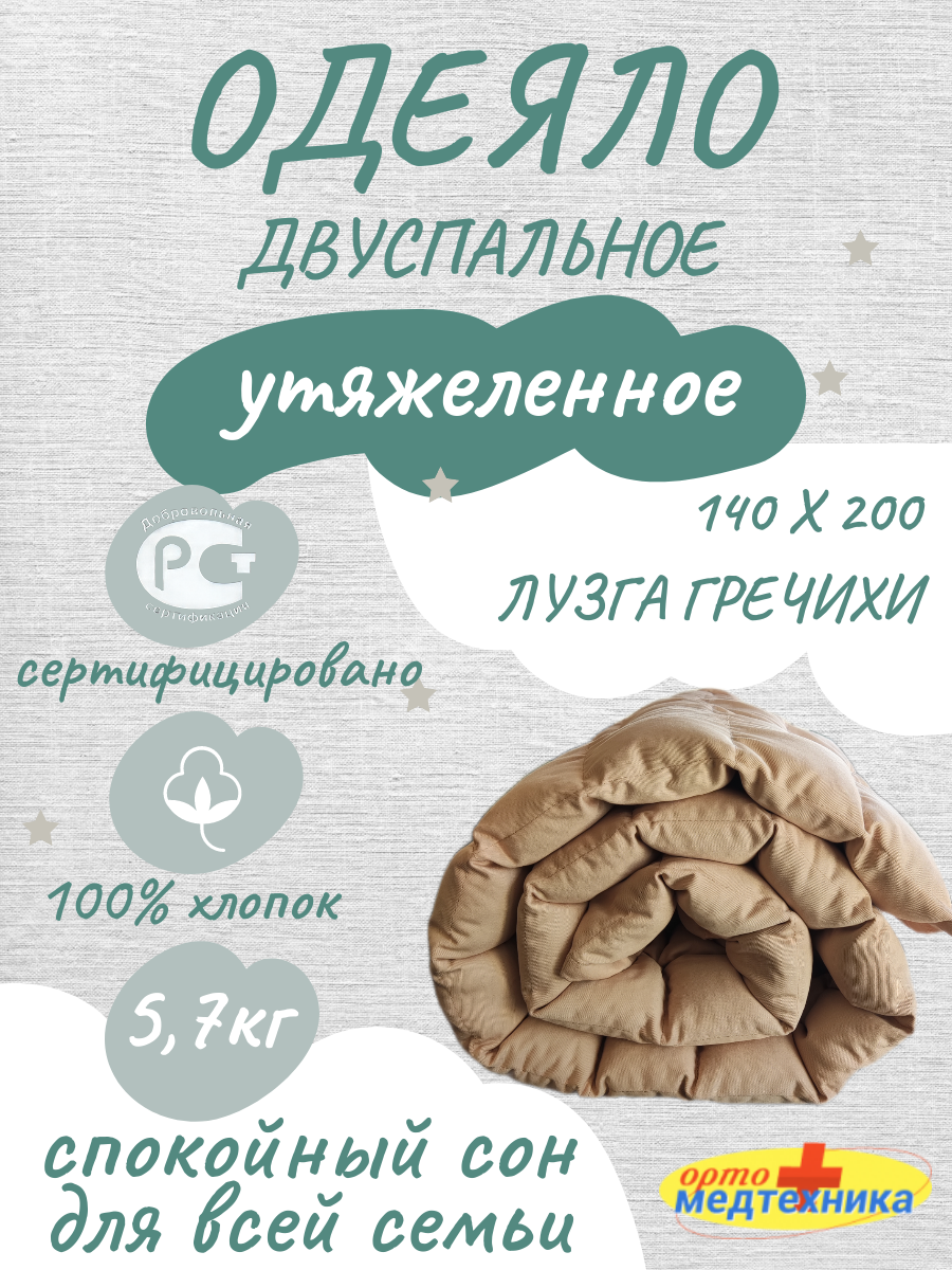 Утяжеленное одеяло с лузгой гречихи ОМТ-10.2.15