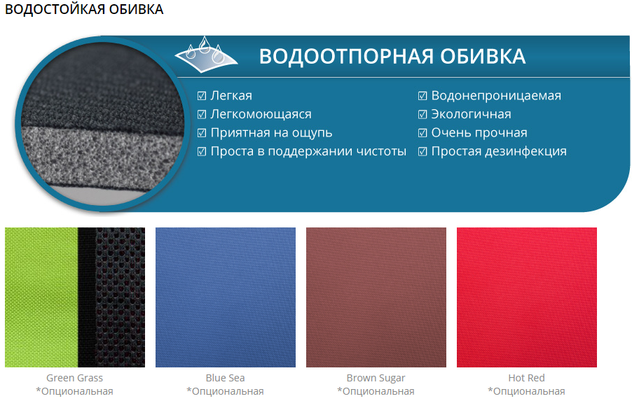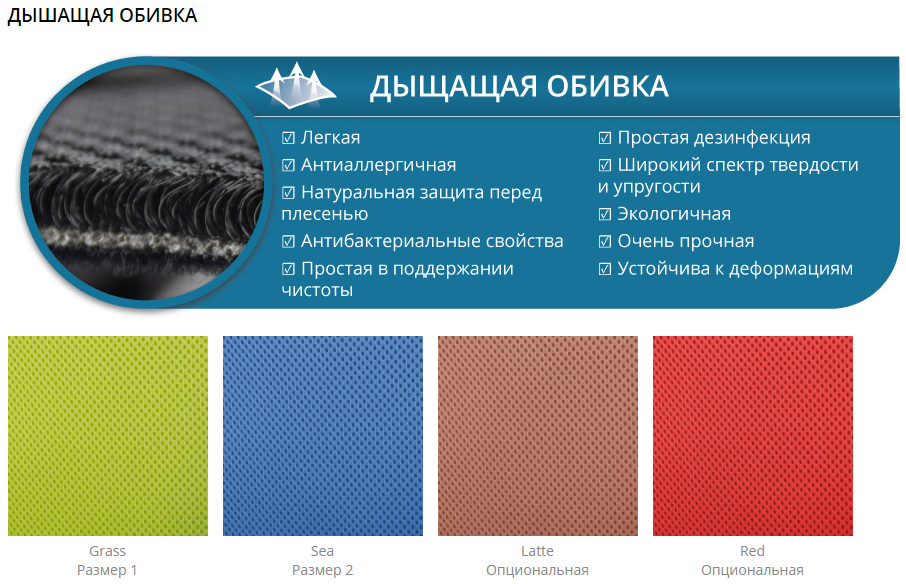 · Дышащая обивка ATMO™: Разм. 1 GRASS, Разм. 2 SEA.
